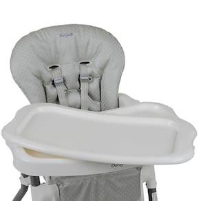Conta também com uma sobre bandeja que se desencaixa facilmente para limpeza após a refeição e um assento reclinável para um breve descanso enquanto a mamãe lava a louça.