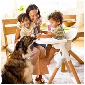 Montagem sem ferramentas a cadeira alta é montada em minutos. Pernas dobráveis para fácil zenamento. A bandeja se prende na parte de trás da cadeira quando não está em uso. O design do assento de uma peça limpa facilmente. Adequado para bebês e crianças até 33 lbs. 15kg. Estética moderna é um ótimo chá de bebê ou presente de registro Marca: Não Informado