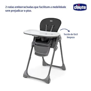 O assento reclinável em três posições ajuda a posicionar o bebê da melhor maneira durante as refeições. As rodas emborrachadas garantem uma movimentação mais fácil e segura.