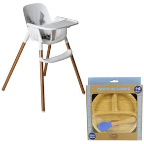 Conteúdo da Embalagem: 1 Cadeira De Alimentação Poke Até 15 kg - Burigotto 1 Prato Infantil de Bambu com Ventosa Azul - Turminha Alves Baby