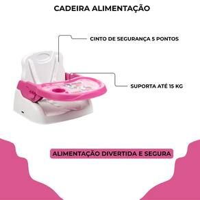 Cadeira de alimentação portátil bandeja ajustável booster até 15 kg disney minnie A cadeira para alimentação tipo booster é versátil e pode ser em cima de uma cadeira regular. Leve e facilmente desmontável, pode ser transportada para qualquer sem dificuldades. Muito segura, está equipada com cinto de segurança de 5 pontos. Idade recomendada: 6 meses + Peso suportado: até 15 kg Cinto de segurança de 5 pontos Bandeja removível e ajustável em 3 posições Adaptável a cadeiras Desmontável, fácil de transportar Material: plástico e aço Registro inmetro: 001 486/2022 de 3 meses direto com o fabricante Marca: Não Informado
