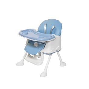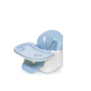 A cadeira de alimentação possui 4 fases: Alta, Infantil, Booster e com Rodinhas. Além de portátil, totalmente desmontável com espaço interno que armazena todas as peças, possui bandeja removível e ajustável em 3 posições, apoio dos pés removível e bolsa de armazenagem.