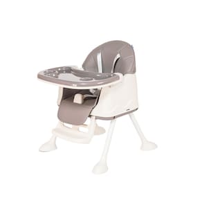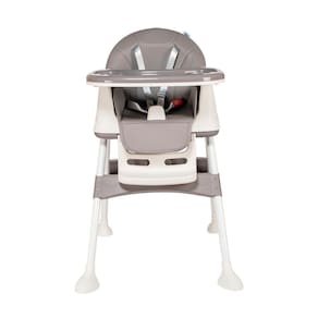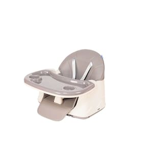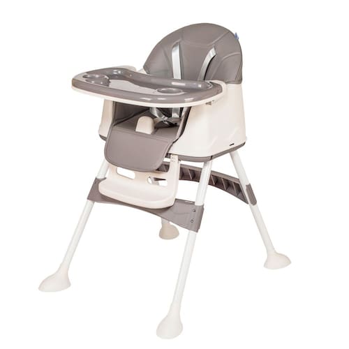 A cadeira de alimentação possui 4 fases: Alta, Infantil, Booster e com Rodinhas. Além de portátil, totalmente desmontável com espaço interno que armazena todas as peças, possui bandeja removível e ajustável em 3 posições, apoio dos pés removível e bolsa de armazenagem.