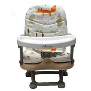 Essa Cadeira de Alimentação Portátil da Premium Baby com estampa exclusiva "Raposa" é perfeita para bebês a partir de 6 meses.