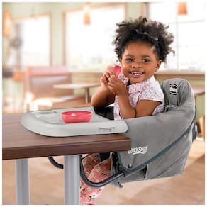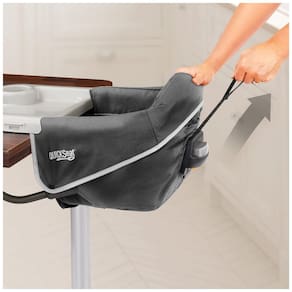 1 puxe o QuickSeat apertado com segurança para mesas de jantar. As dimensões dobradas são 43 x 20x . A bandeja de encaixe oferece uma superfície de alimentação portátil e fácil de limpar. A capa do assento se encaixa facilmente para lavar. Capaz de acomodar saias de mesa de até . Use apenas em mesas de 2 a de espessura. Não use em tampos de mesa de vidro, tampos de mesa soltos, folhas de mesa, mesas de cartas, mesas de pedestal único ou com toalhas de mesa ou jogos americanos. A dobra compacta e a alça de transporte oferecem conveniência para viagens. Equipado com arnês de 3 pontos Marca: Não Informado