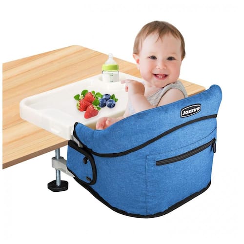 Cadeira de Alimentação Portátil com Encaixe em Mesa e Bandeja, Jozzve, Azul