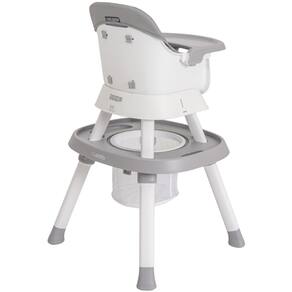 12 funções diferentes em um único produto prática montagem das peças bandeja de refeição removível e ajustável em 3 graduações cinto de segurança de 5 pontos estofado removível amplo assento e encosto cesto porta-objetos centro de atividades com assento giratório, plataforma para apoio dos pés e 5 diferentes brinquedos para interação e desenvolvimento da criança, sendo 1 deles um brinquedo musical opções da cadeira com ou sem bandeja e banquinho para serem utilizados de forma avulsa mesa com tampo liso para ser utilizada em conjunto com as versões avulsas da cadeira e banquinho mesa com tampo apropriado para brincar com blocos de montar prática banqueta alta cadeira portátil de refeição e assento de elevação que podem ser instalados em vários tipos de cadeiras cadeira alta e cadeira portátil: 6 meses até 15 kg centro de atividades: 4 meses até 12kg demais funções: 3 anos até 23 kg nunca deixe a criança sozinha, sem a supervisão de um adulto