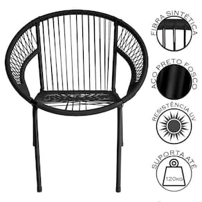 A Cadeira Eclipse Tramado foi desenvolvida para unir o design moderno a funcionalidade que seu espaco de lazer merece. Seu acabamento em fibra sintetica tramada a mao, aliado a estrutura em aco carbono com pintura eletrostatica, proporciona resistencia superior e uma estetica artesanal que valoriza qualquer ambiente.