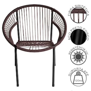 A Cadeira Eclipse Tramado foi desenvolvida para unir o design moderno a funcionalidade que seu espaco de lazer merece. Seu acabamento em fibra sintetica tramada a mao, aliado a estrutura em aco carbono com pintura eletrostatica, proporciona resistencia superior e uma estetica artesanal que valoriza qualquer ambiente.