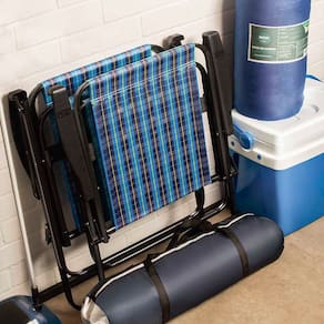 Dobrável e fácil de carregar, a Cadeira Xadrez é prática e confortável, perfeita para usar na sala de estar, na varanda, no parque e onde mais você quiser. Muito resistente, tem estrutura fabricada em aço carbono com acabamento em pintura epóxi à pó preta, que proporciona um visual moderno, e peças plásticas em polipropileno, suportando até 110 Kg.