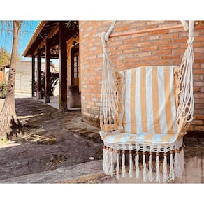 Instalação: - a cadeira pode ser instalada diretamente na laje, onde deverá ser chumbado um gancho de ferro que suporte o peso mínimo de 150 kg. - pode ser instalada também em uma haste de madeira resistente que suporte no mínimo 150 kg, que é o caso das casas ou varandas com telhado, utilizando cordas ou até mesmo correntes. Marca: Ddb
