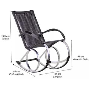 Dimensoes: Altura total: 103 cm Altura assento ao chao: 49 cm Largura: 67 cm Profundidade: 95 cm Suporta ate 180 Kg