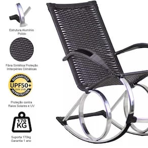 Cadeira De Balanço Em Alumínio Para Jardim E Sala , Ag Caracteristicas: Pecas produzidas em aluminio polido ou pintado (trabalhamos com a pintura eletrostatica) e revestidas em fibra sintetica com protecao UV.