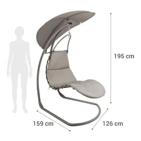 Espreguiçadeira suspensa com suporte da coleção Just HomeA Hanging Lounge Chair com apoio da marca Just Home Collection é um móvel moderno e inovador, perfeito para instalar em terraços e desfrutar a qualquer momento com o melhor conforto.CaracteristicasEsta Espreguiçadeira Pendurada com suporte da marca Just Home Collection, tem um suporte metálico e toldo para o proteger do sol. Sua tapeçaria é na cor taupe e suas dimensões são 159 cm de comprimento, 232 cm de altura e 126 cm de largura.Coleção Just Home da marcalargura 126cmaltura 232cmComprimento 159cmMaterial Metal/ PoliésterMaterial da estrutura MetalCor TaupeEstilo deco executivo urbanoTem braços NãoEmpilhável SimDobrável NãoTem rodas n.Posições 1Peso máximo suportado 120 kggarantia de 6 mesesCaracterísticas Espreguiçadeira suspensa c/suporte e toldoEspreguiçadeiras tipo