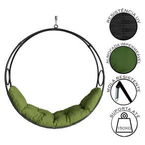 Cadeira De Balanço Lua Suspensa Em Fibra Sintética Preto/verde Descubra o conforto e a moda da Cadeira Balanco Suspenso Lua Nova, uma peca que transforma qualquer espaco com seu design sofisticado e funcionalidade excepcional. Fabricada em aco carbono, sua estrutura e revestida com pintura eletrostatica, que proporciona uma durabilidade e resistencia superiores, protegendo contra corrosao e desgaste. O acabamento em fibra sintetica com tratamento anti-UV garante uma protecao eficaz contra os raios solares, mantendo a aparencia da cadeira impecavel por muito mais tempo. A fibra sintetica nao apenas acrescenta um toque estetico unico, mas tambem e altamente resistente, ideal para ambientes expostos as temperaturas. O assento da cadeira e projetado para maximo o conforto, com uma almofada em espuma D28 que oferece um suporte perfeito. Esta almofada e revestida com tecido impermeavel, facilitando a limpeza e manutencao, alem de garantir resistencia a umidade e manchas, tornando-a pratica para uso diario. Para complementar, a Cadeira Balanco Suspenso Lua Nova vem equipada com uma mola e um mosquetao de alta qualidade, garantindo uma instalacao segura e robusta. Seja para uso em areas internas ou externas, esta cadeira e a escolha perfeita para adicionar um toque de moda e conforto ao seu espaco, proporcionando momentos relaxantes e confortaveis. ESPECIFICACOES TECNICAS: - Marca: Acesse Moveis; - Modelo:Cadeira Balanco Suspenso Lua em Fibra Sintetica; - Material da Estrutura: Aco Carbono; - Acabamento: Fibra Sintetica com anti-UV; - Material do Assento: Impermeavel - Enchimento do Assento: Espuma D28; - Acompanha Almofada? Somente a almofada do assento; - Possui Corrente? Acompanha mola e mosquetao; - Garantia: 3 Meses; - Suporta Ate (kg): 150kg; - Necessita de Montagem?(Sim/Nao): Sim, necessita somente de um encaixe; - Medidas (LarguraxProfundidadexAltura): 140x50x140cm; Marca: ACESSE MÓVEIS