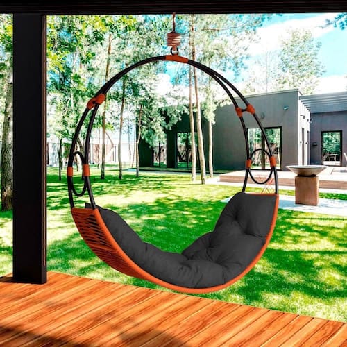 Cadeira De Balanço Suspenso Lua Nova Em Corda Náutica Ocre/preto A Cadeira Balanco Suspenso Lua e a escolha perfeita para transformar qualquer espaco em um ambiente aconchegante e elegante. Com sua construcao robusta e materiais de alta qualidade, esta cadeira oferece resistencia e durabilidade. Fabricada em aco carbono com pintura eletrostatica, sua estrutura garante protecao contra corrosao e um visual moderno. O acabamento em corda nautica de alta qualidade, com resistencia UV, nao so proporciona uma protecao eficaz contra os raios solares, mas tambem adiciona um toque sofisticado a cadeira, mantendo sua aparencia impecavel por muito mais tempo. O assento e equipado com uma almofada confeccionada em espuma D28, conhecida por seu excelente suporte e conforto. Revestida com tecido impermeavel, a almofada facilita a manutencao e e resistente a umidade, tornando-a ideal para uso em ambientes internos e externos. A fabricacao artesanal totalmente da cadeira garante um toque unico e diferenciado, fazendo de cada peca uma obra de arte exclusiva. Para completar, a Cadeira Balanco Suspenso Lua vem com uma mola e um mosquetao de alta qualidade para o encaixe, proporcionando uma instalacao facil e uma experiencia de balanco suave e segura. Seja para relaxar na varanda, no jardim ou ate mesmo dentro de casa, esta cadeira combina conforto e funcionalidade, criando um refugio acolhedor em qualquer lugar. ESPECIFICACOES TECNICAS: - Marca: Acesse Moveis; - Modelo:Cadeira l Balanco Suspenso Lua em Corda Nautica; - Material da Estrutura: Aco Carbono; - Acabamento: Corda Nautica com anti-UV; - Material do Assento: Impermeavel - Enchimento do Assento: Espuma D28; - Acompanha Almofada? Somente a almofada do assento; - Possui Corrente? Acompanha mola e mosquetao; - Garantia: 3 Meses; - Suporta Ate (kg): 150kg; - Necessita de Montagem?(Sim/Nao): Sim, necessita somente de um encaixe; - Medidas (LarguraxProfundidadexAltura): 140x50x140cm; Marca: ACESSE MÓVEIS