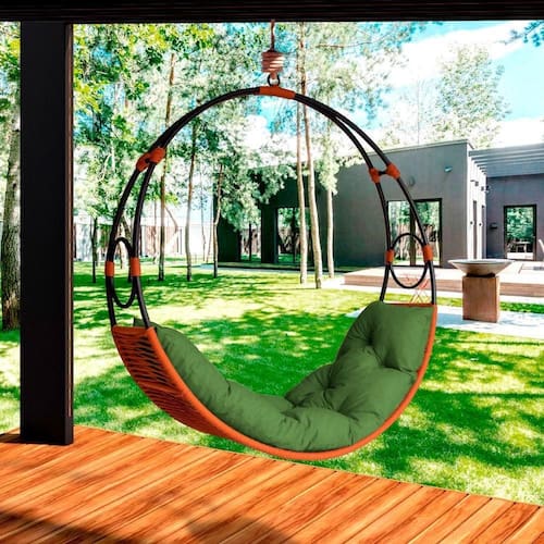 Cadeira De Balanço Suspenso Lua Nova Em Corda Náutica Ocre/verde A Cadeira Balanco Suspenso Lua e a escolha perfeita para transformar qualquer espaco em um ambiente aconchegante e elegante. Com sua construcao robusta e materiais de alta qualidade, esta cadeira oferece resistencia e durabilidade. Fabricada em aco carbono com pintura eletrostatica, sua estrutura garante protecao contra corrosao e um visual moderno. O acabamento em corda nautica de alta qualidade, com resistencia UV, nao so proporciona uma protecao eficaz contra os raios solares, mas tambem adiciona um toque sofisticado a cadeira, mantendo sua aparencia impecavel por muito mais tempo. O assento e equipado com uma almofada confeccionada em espuma D28, conhecida por seu excelente suporte e conforto. Revestida com tecido impermeavel, a almofada facilita a manutencao e e resistente a umidade, tornando-a ideal para uso em ambientes internos e externos. A fabricacao artesanal totalmente da cadeira garante um toque unico e diferenciado, fazendo de cada peca uma obra de arte exclusiva. Para completar, a Cadeira Balanco Suspenso Lua vem com uma mola e um mosquetao de alta qualidade para o encaixe, proporcionando uma instalacao facil e uma experiencia de balanco suave e segura. Seja para relaxar na varanda, no jardim ou ate mesmo dentro de casa, esta cadeira combina conforto e funcionalidade, criando um refugio acolhedor em qualquer lugar. ESPECIFICACOES TECNICAS: - Marca: Acesse Moveis; - Modelo:Cadeira l Balanco Suspenso Lua em Corda Nautica; - Material da Estrutura: Aco Carbono; - Acabamento: Corda Nautica com anti-UV; - Material do Assento: Impermeavel - Enchimento do Assento: Espuma D28; - Acompanha Almofada? Somente a almofada do assento; - Possui Corrente? Acompanha mola e mosquetao; - Garantia: 3 Meses; - Suporta Ate (kg): 150kg; - Necessita de Montagem?(Sim/Nao): Sim, necessita somente de um encaixe; - Medidas (LarguraxProfundidadexAltura): 140x50x140cm; Marca: ACESSE MÓVEIS