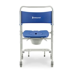 Seu design versátil permite o uso sobre o vaso sanitário, para banho e locomoção interna na casa. Além disso, a cadeira conta com apoio de pés rebatíveis com pino click, comadre inclusa e 4 rodízios blindados com rodas giratórias de 3 polegadas e travas de segurança.