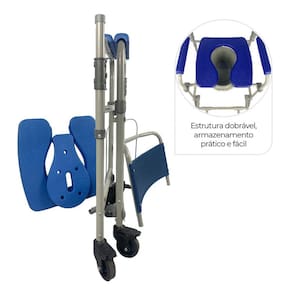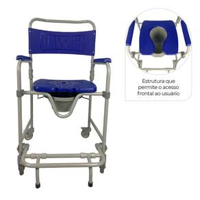 -Melhor custo-benefício; -A única da categoria dobrável e desmontável até 150 kg; -Armazenamento prático e fácil; -Fácil higienização do paciente sentado com acesso frontal; -4 Rodízios 360° blindados e com travas de segurança; -Apoio de pés com antitombo rebatível/removível com pino click; -Pintura epóxi de alta resistência, garantindo maior durabilidade do produto; -3 em 1: Banho, sobrevaso e suporte para comadre; -Rodas em polipropileno de alta resistência e antiferrugem; -Assento em polipropileno ultra resistente com abertura frontal removível; -Encosto em plástico termo moldável maleável e resistente; -Comadre inclusa.