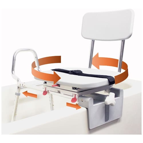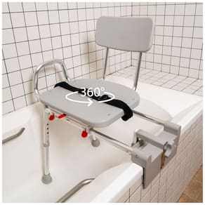 O banco de transferência deslizante giratório para montagem em banheira 77762 torna a entrada na banheira mais fácil e segura. Economize espaço O assento gira 360, trava a cada 90 e desliza na banheira. Design com economia de espaço. Montagem sem ferramentas. Monte para ficar de frente para a direita ou para a esquerda. A braçadeira não funcionará em paredes de banheira com tampo arredondado. Apoio de braço 75003 Marca: Não Informado