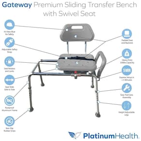 O Banco de Chuveiro de Transferência Deslizante Profissional foi desenvolvido para proporcionar segurança, conforto e conveniência durante a entrada e saída do chuveiro ou banheira. Seu design inovador permite transferências fáceis e seguras, eliminando o risco de quedas ou lesões. O banco deslizante e giratório facilita o movimento suave, ajudando a evitar lacerações na pele e distensões musculares, comuns em bancos de banho antigos. O assento e o encosto são acolchoados com estofamento de poliuretano moldado de célula fechada, de grau médico, que não absorve água e é fácil de limpar e desinfetar, proporcionando uma superfície confortável e antiderrapante.