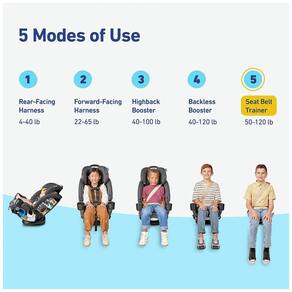 5. Modo Cinto de Assento Treinador: Indicado para crianças com peso entre 50 e 120 libras aproximadamente 22,68 a 54,43 kg.