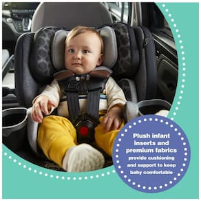 A cadeirinha atende ou excede todos os padrões de segurança federais e é compatível com as normas da National Highway Traffic Safety Administration (NHTSA). Com capacidade de peso máximo recomendado de 45,35 quilos, a cadeirinha é adequada para todas as fases, desde o nascimento até os 10 anos, em três modos: voltado para trás (até 22,68 quilos), voltado para frente (de 9,07 a 22,68 quilos) e assento de reforço com posicionamento do cinto (de 18,14 a 45,35 quilos).