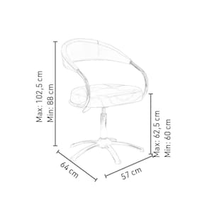 - Altura (Chão até Assento): Mínima 62,5 cm / Máxima 60 cm
