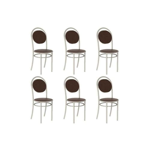 Cadeira De Cozinha 190 Aço Kit 6 Uni Prata/courano Cacau - Carraro