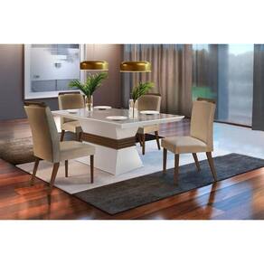 Cadeira Sala de Jantar Athenas Kit 2 Un Madeira Capuccino/Suede Creme - Rufato