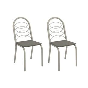 Cadeira De Cozinha Holanda 2c009nk Aço Kit 2 Un Niquel/linho Escuro - Kappesberg