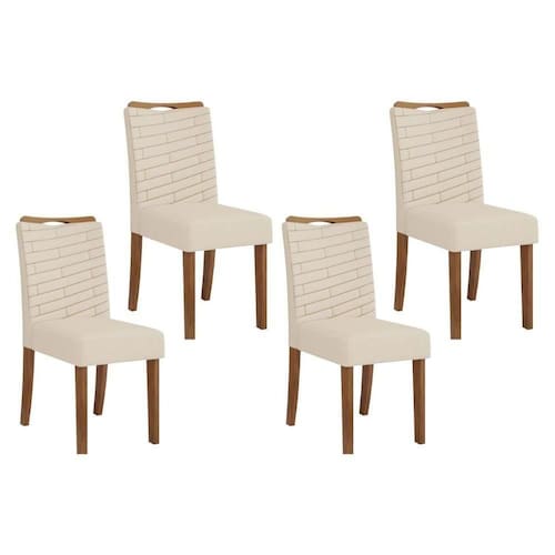 Cadeira De Cozinha Julia Kit 4 Un Freijo/linho Neve - Dj Móveis
