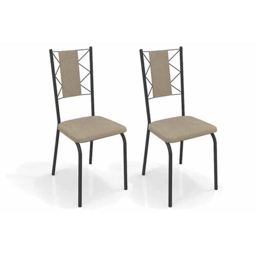 Cadeira De Cozinha Lisboa 2c076prf Aço Kit 2 Un Preto/linho Bege Fendi - Kappesberg