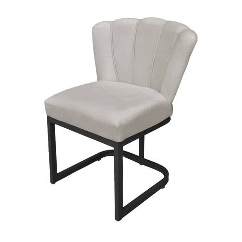 Cadeira de Decorativa Pétala Veludo Bege Base de Ferro Preta - Vallisa Decor