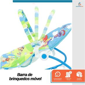 Especificações Técnicas Idade recomendada: 0 a 36 meses Peso suportado: Até 18 kg Dimensões do produto: 70 cm (largura) x 40 cm (altura) x 55 cm (comprimento) Peso: 1,75 kg Material: Espuma poliéster, polipropileno (PP) e tubo metálico Funciona com pilhas (não inclusas) Aprovada pelo INMETRO - 002189/2019