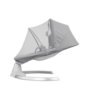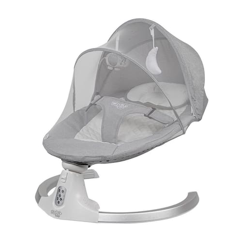 Com conexão via Bluetooth, permite que os pais escolhe as músicas favoritas da criança, com 12 melodias programadas com canções de ninar e sons da natureza, também controladas pelo controle remoto ou pelo display da cadeira, garantindo toda calmaria e tranquilidade para os pequenos na hora da soneca ou até mesmo acordado se divertindo com os 2 brinquedos em pelúcia inclusos na alça da capota, permite que o bebê fique confortável em todos os momentos. Possui mosquiteiro que cobre toda a cadeira e capota retrátil removível.