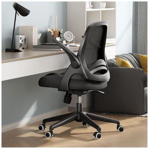 Cadeira de mesa de escritório em casa Design elegante e cadeira de mesa de ajuste simples com encosto médio Combine diferentes estilos decorativos O encosto ergonômico se ajusta à curva natural da região lombar e tira a dor da coluna do corpo Economia de espaço você pode virar os braços para cima e colocar a cadeira sob a mesa para economizar espaço Adequado para sala de estar sala de estudo sala de conferência e escritório Respirável Parte traseira em malha de alta densidade suporte flexível respirável Projetado para apoiar sua parte inferior das costas Ajustável a cadeira de trabalho Hbada home office tem uma tensão de inclinação de 120 graus altura pneumática ajustável de a corresponder a diferentes estaturas Capacidade de peso 113 kg Marca: Não Informado