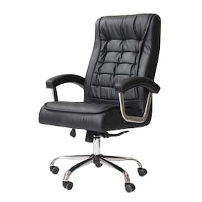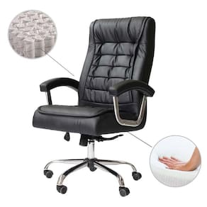 Cadeira Para Escritório Com Braço Base Cromada Rodinhas de nylon anti risco resistente confortável e barata tipo poltrona executiva giratória com ajuste de altura Para 150kg Big Monique Molas Enscadas Pillow Top ;Preta
