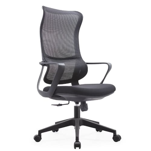 Cadeira de escritório com encosto de cabeça 2D ajustável; Tela PA e fibra de vidro; Encosto reclinável em tela PP e fibra de vidro; Assento em tecido com espuma moldada de alta densidade com capa de assento; mecanismo borboleta com travamento; Apoio de braço fixo; Pistão a gás classe 3; Base em nylon 340 mm, com rodízios de nylon de 50 mm.; Marca: Não Informado