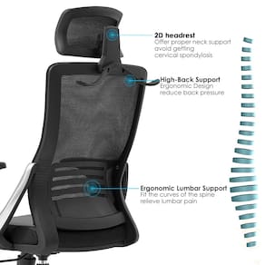 Cadeira de escritório com encosto de cabeça 2D; Encosto em tela mais estrutura em PP preto; Teste de residência das costas de 105Kg; Apoio lombar 2D; Apoio de braço ajustável em altura com almofada de PU; Assento em tecido com espuma de alta densidade; Pistão a gás classe 3 aprovado pela BIFMA; Mecanismo borboleta com função de inclinação e trava; Base em PP de 310 mm e rodízios de 50 mm aprovados pela BIFMA; Marca: Não Informado