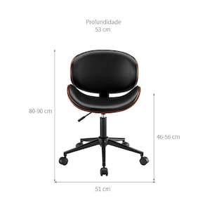 Que tal a Cadeira de Escritório Bergen?A rotina do trabalho é cansativa e pede móveis de qualidade para acompanhar, principalmente se a atividade requer horas e horas sentado. A Cadeira de Escritório Bergen reúne características primordiais para que esse longo período seja mais confortável e não prejudique o seu corpo. Além de ter estrutura em metal + encosto em madeira compensada para aguentar o uso diário, a peça possui regulagem de altura para se adaptar às suas necessidades e rodízios em nylon para quando precisar se movimentar pelo cômodo. Já o revestimento em corino na cor preta e o contraste do marrom promovem sofisticação para a decoração profissional. Agora é só fazer as melhores harmonizações entre o mobiliário e criar o ambiente perfeito.