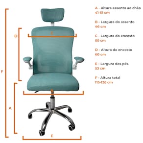 Largura: 50 cm — Ótimo para suportar a região das costas de maneira confortável.Altura: 60 cm — Suporte adequado, ideal para os usuários.2. Assento