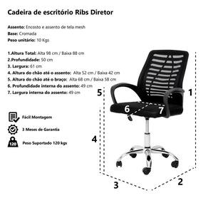 Cadeira De Escritório Diretor Ribs Tgt Tela Mesh - Waw Design Modelo:Cadeira de Escritório Diretor Ribs Assento: Espuma Base: Metal Cromado Profundidade: 50 cm Largura: 61 cm Altura Total: 99 cm Altura do Chão Até o Assento: Alta 52 cm - Baixa 42 cm Altura do Chão Até o Braço: Alta 68 cm - Baixa 58 cm