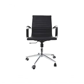 Cadeira Para Escritório Com Braço Base Cromada Rodinhas Resistente Confortável e Barata Tipo Diretor Secretária Para 120kg Stripes Esteirinha Charles Eames Eiffel