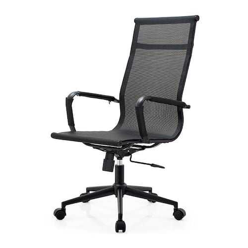 A Cadeira de Escritório Eames Dark Esteirinha Alta Tela na cor preta é um ícone do design de mobiliário, concebida em 1958 pelo renomado designer Charles Eames.
