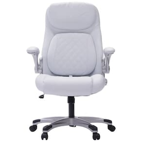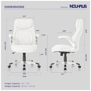 FORTE NA APARÊNCIA: Esta cadeira de couro PU tem uma distância entre eixos de nylon resistente, reforçada com nervuras e reforços. O suave elevador a gás Classe 4 oferece um alcance do assento ao chão de 47,5 a 56,89 centímetros. Você tem espaço máximo no quadril de 49,02 centímetros e capacidade máxima de 108,86 quilogramas. Escolha entre preto, cinza ou branco para fortalecer sua decoração.