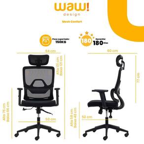 Cadeira de escritório ergonômica ravena com suporte lombar e Cor preto Tamanho único Material tela mesh Itempackagequantity 1 Colormap preto Basematerialtype aço cromado Color preto Mfrpartnumber 7549pr Cor preto Color preto Montagem sim, instalação dos pés Altura sem embalagem 131 Largura sem embalagem 64 Comprimento sem embalagem 60 Peso sem embalagem 15 Cuidados limpar com pano úmido Tipo de estofado espuma Tipo de encosto tela mesh Conteúdo da embalagem 1 cadeira br / br / br / br / br / Versatilidade: ideal para escritórios, salas de reunião e espaços executivos, a cadeira presidente ravena adapta-se perfeitamente a diferentes ambientes, adicionando um toque de sofisticação e elegância ao seu espaço.br / br / Características técnicas e dimensões:br / Assento: assento em espuma de alta densidade d28 br / br / Largura: 64 cm br / Profundidade: 60 cm br / Altura total: alta 131 cm - baixa 121 cm br / Altura do encosto: 77 cm até o encosto de cabeça br / Altura do chão até o assento: alta 58 cm - baixa 48 cm br / Altura do chão até o braço: alta 76 cm - baixa 66 cm br / br / Medida interna do assento br / Profundidade: 50 cmbr / Largura: 50 cmbr / Peso máx. Recomendado: 150 kgsbr / : 180 dias