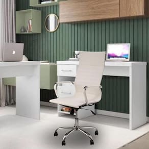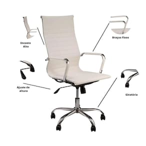 Descubra a elegância da Cadeira de Escritório Giratória Esteirinha Alta. Revestida em couro sintético, possui encosto alto e braços fixos em metal, perfeita para elevar seu home office ou escritório com estilo e ergonomia.