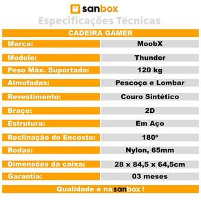 A Cadeira De Escritório Gamer Ergonômica Reclinável Até 180º Com Braço 2D MoobX Thunder é perfeita para os games mais irados e desafiadores, totalmente preparada para oferecer extremo conforto e ergonomia durante longas horas de lazer, trabalho ou estudos.