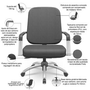 Fabricada com estrutura robusta, espuma de alta e ainda com a base giratória stamp, essa cadeira giratória plus size permite ajustes de altura de forma simples, garantindo que você encontre a posição perfeita para o seu corpo. Além disso, foi projetada pensando na ergonomia e no suporte necessário para as diversas atividades no escritório ou home office, por isso conta com rodízios em PU, que oferecem mobilidade suave e silenciosa, facilitando o deslocamento no ambiente de trabalho. Para completar, o design moderno e arrojado se adapta a diferentes espaços, combinando estilo e funcionalidade.